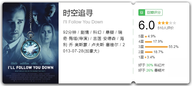 这并不是一部‘知名’电影,在悬疑烧脑片刷屏的时代,这部剧显得朴素、简单,没有视觉特效、没有歌舞华服,只是一个简单的故事,而这个故事正发生在我们每个人身上。穿越片嘛,没有特别完美的穿越,电影的结尾与开头早已埋下伏笔,所以我觉得整部电影的构思都是比较不错的,所以我觉得这部电影值得去看。