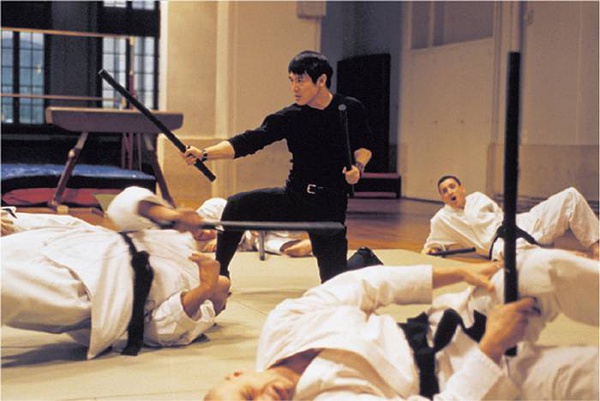 比如李连杰杀到总部,在警察局的房间居然能够找到一个这么大房间在练武。于是李连杰就可以打得酣畅淋漓。其实这个片段是不是很像《精武英雄》里陈真去找日本人的场景,其实这里都是在致敬李小龙《精武门》。