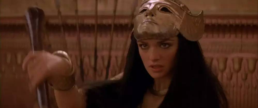 另一个亮点当属于女主角的哥哥,也就是男主角的大舅子乔纳森,他是负责搞笑的,不然这么干燥的冒险旅程多枯燥啊!乔纳森身上那种贪生怕死,贪财好色的小人物气质非常生动接地气,而且作为女主角的哥哥,他本身也是有极高考古学问的,那本牛逼闪闪的《太阳金经》他也能看。最重要的是,因为他的贪心,偷出了一根镶钻的权杖,最后变成杀死蝎子王的关键,因为那正是古法老武士的长矛。【每一个逗逼都是有用的】