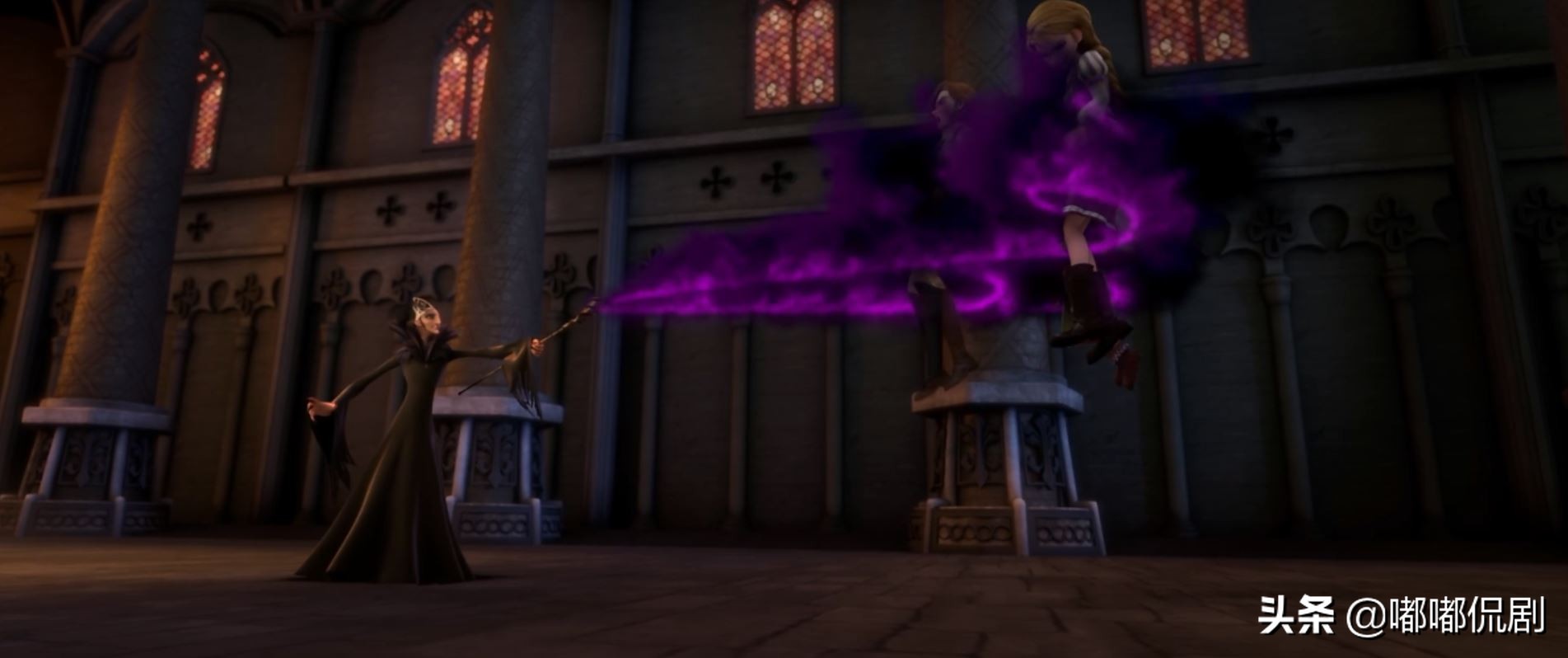 该死的(原谅我这样形容)艾拉虽然同意了艾利克斯的邀请,但她要回家拿走她的八音盒,那是她死去的爸爸留给她的唯一一件东西。很明显,艾拉要到回家中拿东西,这就是危险的开始了。艾拉被侍卫抓去了皇宫,刚变回人类的艾力克斯奋不顾身前去救艾拉,与假王子展开了一场生死对决,战胜假王子后,他在宫内找到了艾拉,这正是老巫婆设下的圈套,她想要霸占整个王国,想将艾力克斯灭口或者让他再次变成一只老鼠。而艾力克斯想将老巫婆粉身碎骨,但是身为人类的他怎么会是老巫婆的对手呢,老巫婆随手一挥就能将艾力克斯重重摔在地上。