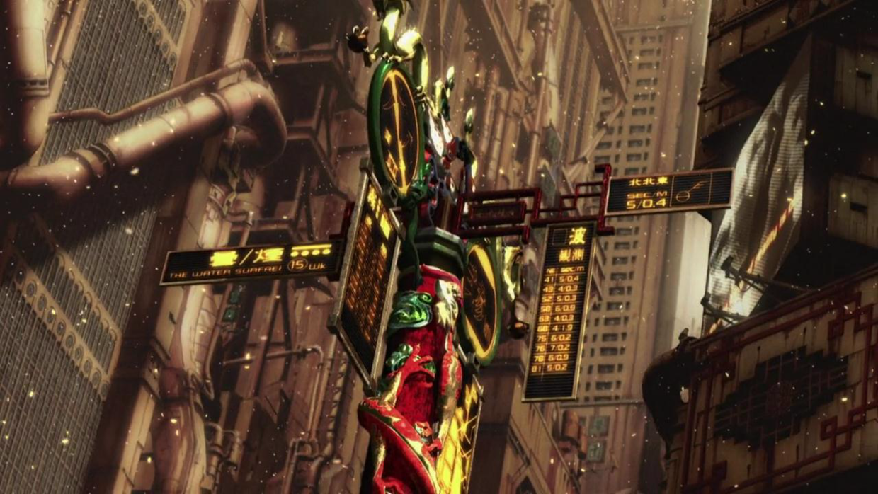 《攻壳机动队2:无罪》视觉层面的造诣如此之高,一大原因是这种追求并非是单纯的炫技,而是达成了一种利用「氛围」强化叙事和主题的效果。这些阴冷的玩偶机器人、庞大而又冷清的未来都市、东方风格极强的街市整体形成的风格强烈到令人深陷其中,在这种风格无比明确的世界之中,我们也能体会到故事与画面的贴合性。