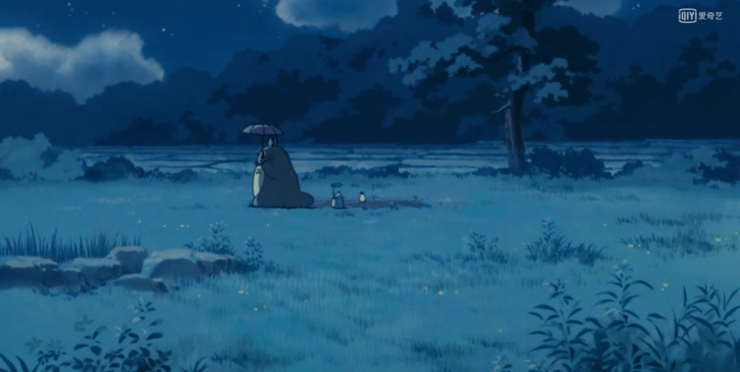 每次下雨,我都会想起《龙猫》里雨天的那个片段。小月背着妹妹,和龙猫一起站在车站。龙猫撑着小月给的伞,听着树梢上的水珠滴落在雨伞上时,兴奋的双眼放光,然后它快乐的一跳,嘣下一地水珠。即使是阴森昏暗的车站,也变得不再恐怖,背着小梅的小月,也不再孤独。