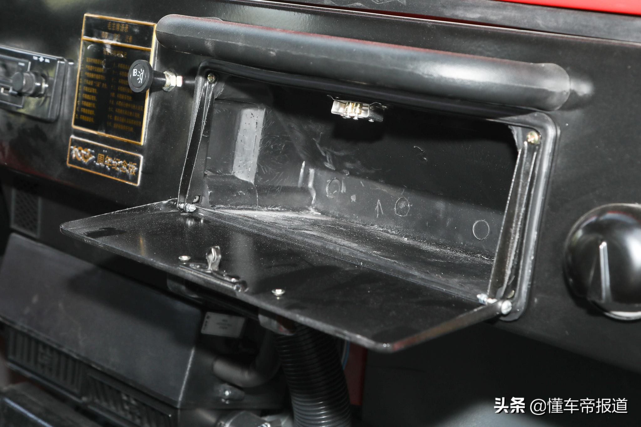 同时,在具有年代感的粗犷内饰处理方式下,很多内饰元器件裸露在外,包括雨刷电机、车内空调管路以及车内线路、线束接头等。当然,北汽制造在大改款bj 212车型上已大幅优化了这样的粗犷式设计,不过在这款致敬版车型上再次使用这样的处理方式或许也是刻意为之。