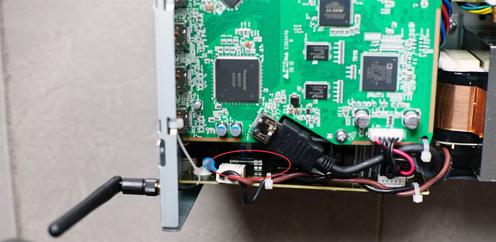 但日系功放一般更换保险丝都比较麻烦——大家注意看上图的红圈处就是sr7013的保险丝。
