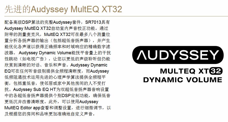 而注意看sr7013内置的这个最新版本的audyssey multeq xt32,他做的只是压低了30hz以下的驻波。因为multeq xt32降低了30hz以下能量,60hz到100hz这一段自己便起来了。