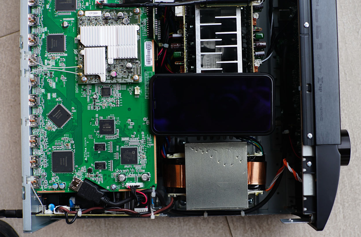 这个结构我们已经非常熟悉,天龙马兰士旗下的功放,除了各自的合并机旗舰会用中置电源结构,其它的产品都是把电压器放在左边,右边是放大电路。