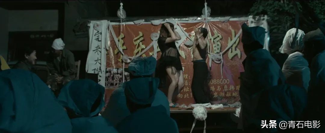 “喜丧”办得好不热闹,台上穿着暴露的女人大跳艳舞,和村里的老汉上演不堪入目的场面。