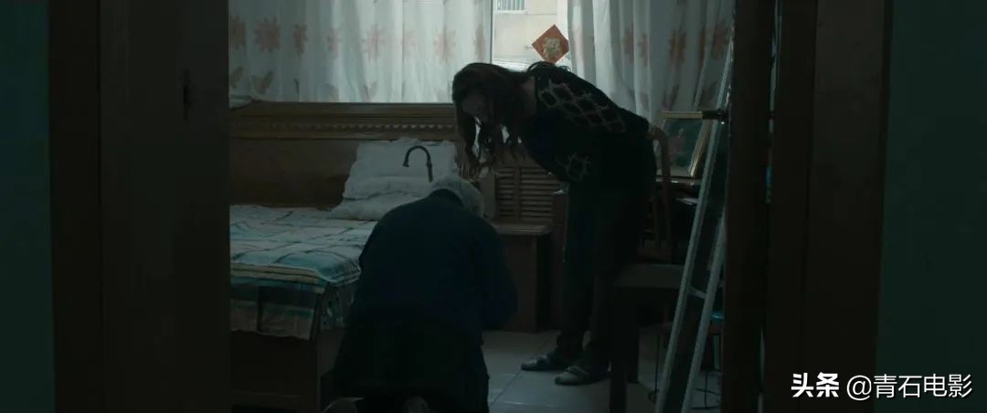 二儿媳摘下了一直戴在头上的头巾,原来老二媳妇也已经是一个老人了,她在操持着家务的时候静默无声地摔了一跤,和影片开头的林郭氏一模一样。