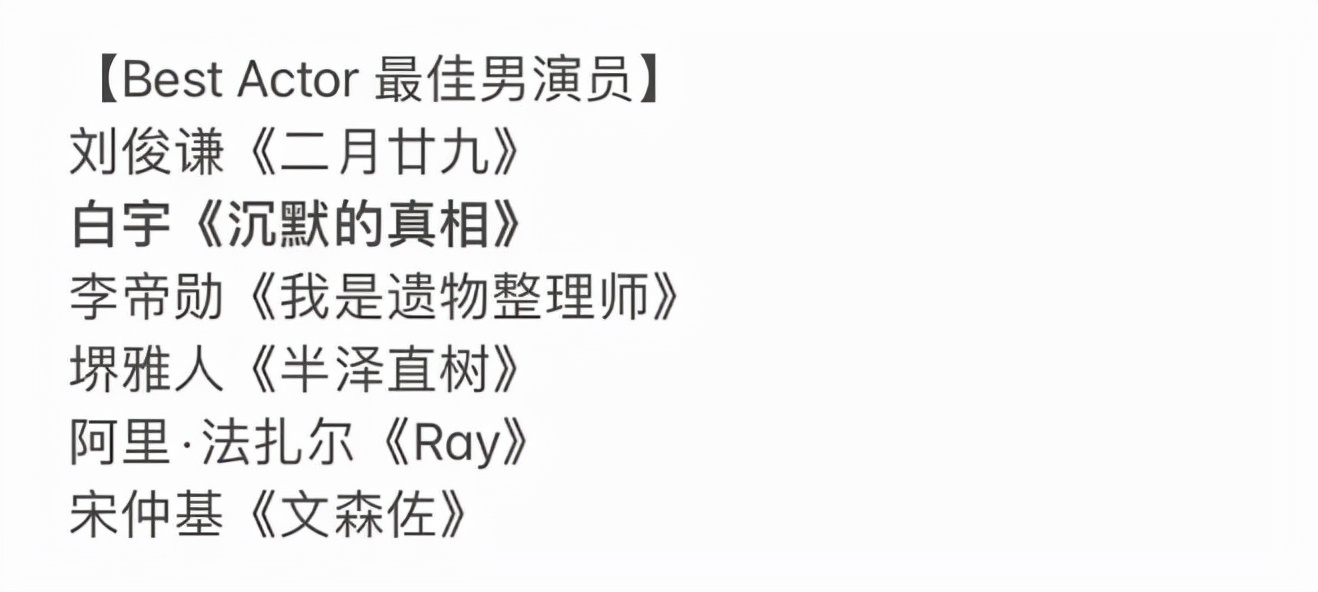 内地也有电视剧作品入围,那就是收获5项提名的《沉默的真相》,白宇还提名最佳男主角,和刘俊谦、李帝勋、堺雅人、阿里·法扎尔、宋仲基一起争夺视帝。