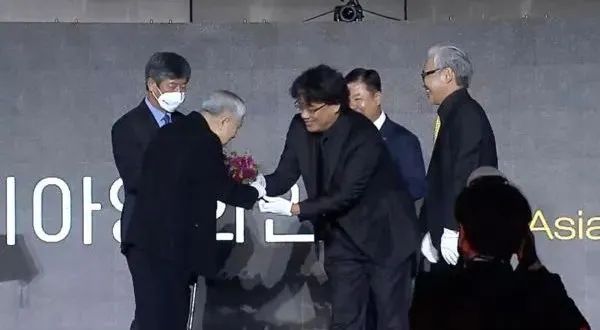 值得一提的是,红毯结束后的典礼上,凭借《寄生虫》成为国际上最具知名度的韩国导演之一的奉俊昊给86岁的林权泽颁发了奖项。