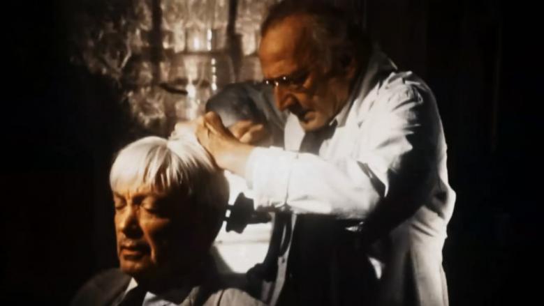 8、 场景切至读报的本海姆男爵(暗示以上故事不过脑海幻象),17个月后男爵生病,遵照医嘱洗蒸气浴,洗澡水除去桎梏,戴着镣铐的园丁奔向自由(与第一段的泡澡呼应)。