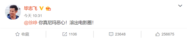 但因为春节档徐峥导演的《囧妈》突然提档又撤档,随后在网络平台免费播出,这样的举动也得罪了院线电影公司,电影院纷纷发声抵制徐峥。随后《逐梦演艺圈》导演毕志飞在网上大骂徐峥,还曝出之前徐峥很多的旧事,比如徐峥导演的《泰囧》版权问题,醉酒殴打女记者等等。毕志飞还喊话徐峥,要求他退出娱乐圈。