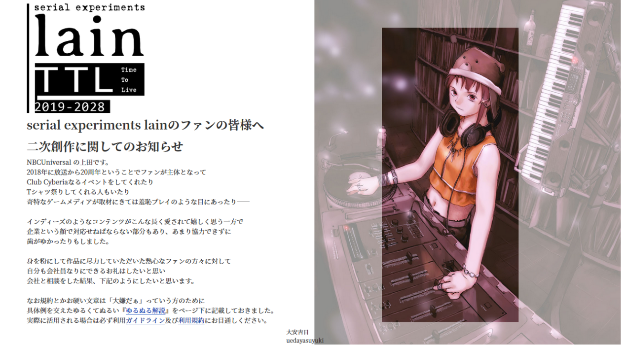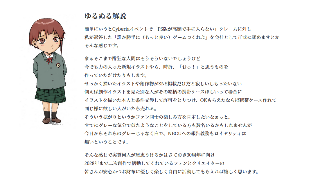 接下来,2019年7月8日,这部动画突然宣布“开源”(open source)了。官方宣布在动画30周年的2028年以前,允许个人商用二次创作。