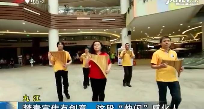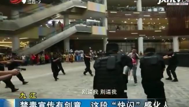 多名排箫演奏家从四处躲藏的人群中逆向而出,排箫声缓缓靠近特警的包围圈,音乐声中,一名女民警救下了小女孩。之后又出现,吸毒男子来到戒毒学员中间,以新的面貌迎接美好明天。其实,这是九江市禁毒委和九江市公安局联合拍摄的禁毒宣传视频,以新颖、时尚的“快闪”形式,来展现禁毒主题。
