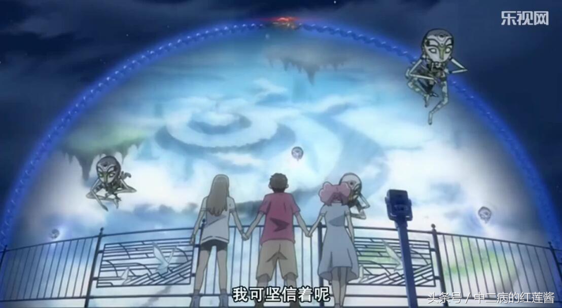 相较于noein、鸦、佑,作为同一个体不同存在的相互影响,花鸡(燕雀)的变化,倒让人有更深的触动。从开局时誓要消灭龙之转矩(遥)的“反派”,到后来摸着美保的头发,说出:【我想守护这些家伙哦】的觉悟。《noein》的花鸡就像《破坏兽》里的武重满老师,让坏人变得更坏,再到守护世界的转变,两者落差之间,难道还能有更好的感动?