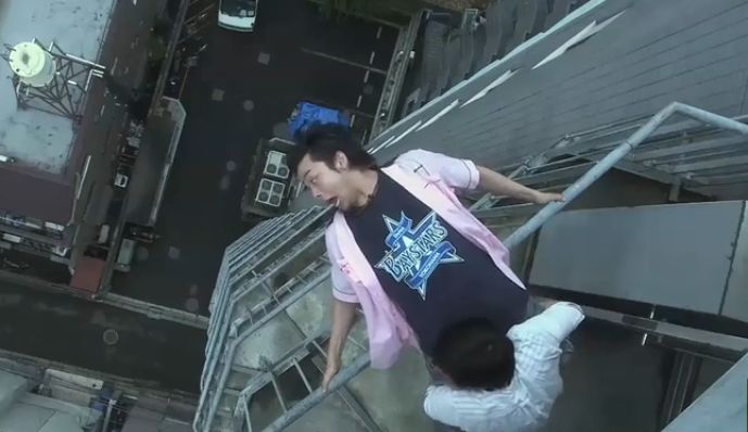 辽太郎冲过去跟渣男打了起来,没想到渣男只是个欺软怕硬的家伙,很快就被愤怒的辽太郎打败了,被逼着跟佳代认错道歉。