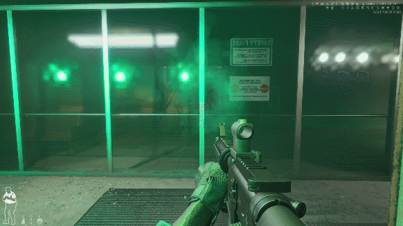 那么如何在最常规的内容里作出一番文章呢?没错,就是细节。ron是一部将细节拉满的作品,通过亿点点的细节来还原真实射击的场景,如果你是一个观察细致的人,那你大抵是能get到我的意思;如果你沉浸在开枪射击快感中的人,那我特别建议你在玩这款游戏的时候观察一下持枪时的各种小细节——切换射击模式时拨动旋钮,举枪瞄准时镜子里摇曳的红点准星,射击时子弹打到物体上扬起的烟尘、枪口的火光、向后弹出的空弹壳以及从气导孔中喷出的热导气体,射击后枪口的热浪效果等等,相信绝对会让你赞不绝口。