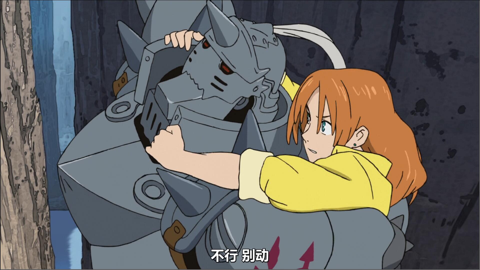 在阿托拉斯的暴露自己阴谋和身份后,要杀死周围所有人,(这段依然血腥,阿托拉斯手刃了两个人,让鲜血流下到圣星的血阵里面,然后抓住茱莉亚,割下自己腰间的皮要与茱莉亚身上的阵图结合,画面都是鲜血直流的,跟《东京喰种》有拼),在即将要杀死茱莉亚的时候,爱德华和阿尔及时出现,再一次抱住了茱莉亚,拯救了她。这时候茱莉亚已经是失了魂的眼神了。"