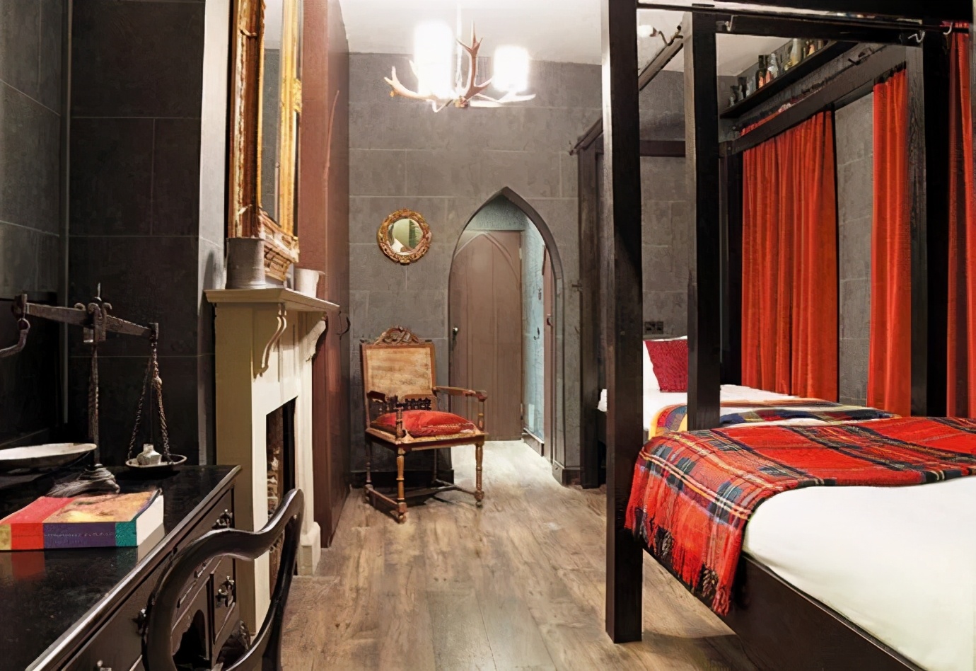 以伦敦乔治亚宅邸酒店为例,其为哈利波特迷提供了一个体验巫师生活的机会。酒店主打哥特风,融入了大量电影中的地标式建筑,包括国王十字车站的9? 站台,并将一些客房仿制成霍格沃兹魔法学校的卧室,这些主题客房里有复古大床、经典的苏格兰花纹床单、天鹅绒帷帘、复古壁炉、陈旧书桌上的魔法书、巫师用的大锅以及各种魔药瓶,等等,营造出十分逼真的魔法氛围。当客人抵达酒店并走进巫师客房时,工作人员会点燃蜡烛,奏响音乐,为客人营造一种独特的居住体验。