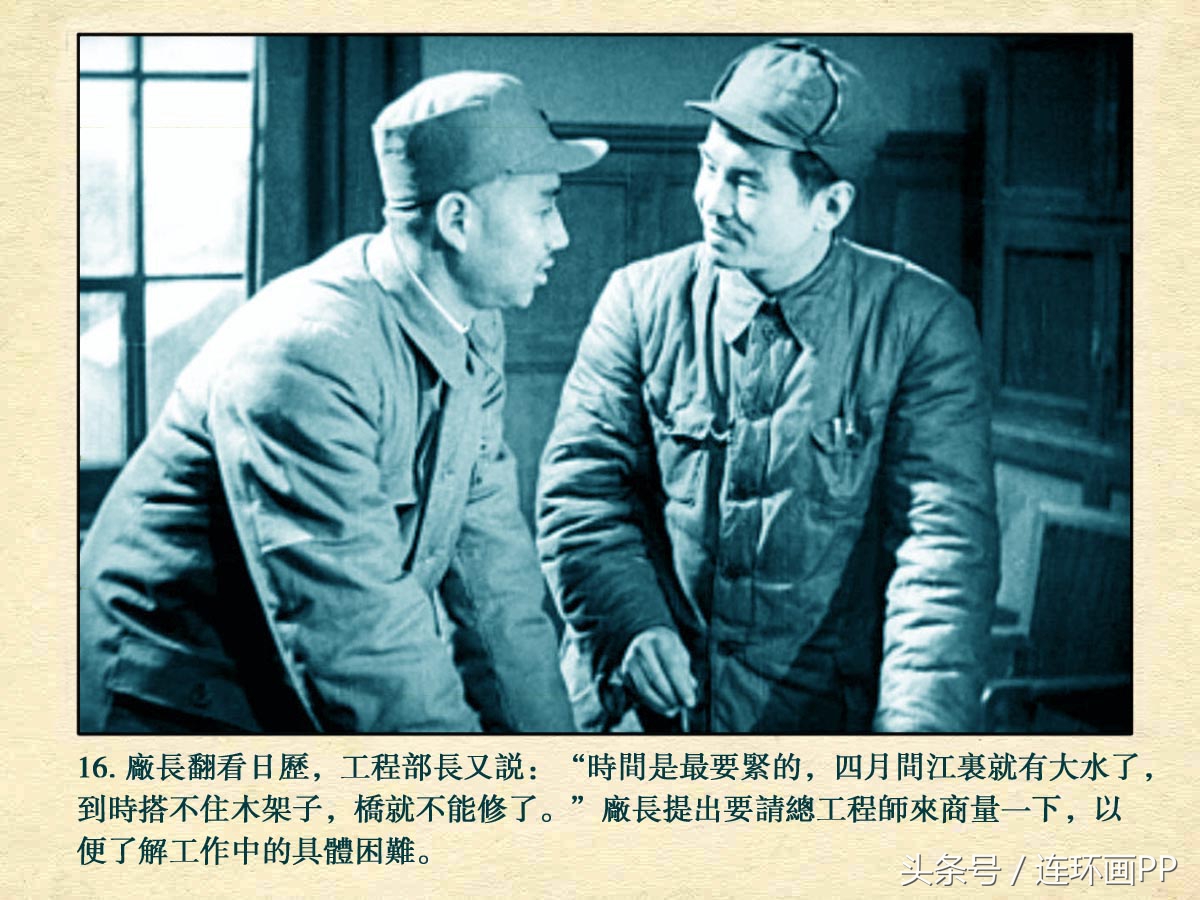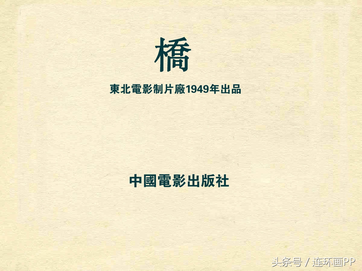 《桥》 这是东北电影制片厂1949年4月摄制的新中国第一部故事片,同时也是新中国电影诞生的重要标志。影片叙述了解放战争时铁路工人支前的故事。它首次在银幕上展现了新中国工人阶级的形象,有着划时代的意义。新美术出版社1954年3月出版了根据该片镜头选编的连环画。规格为50开本,印量为4.5万册。