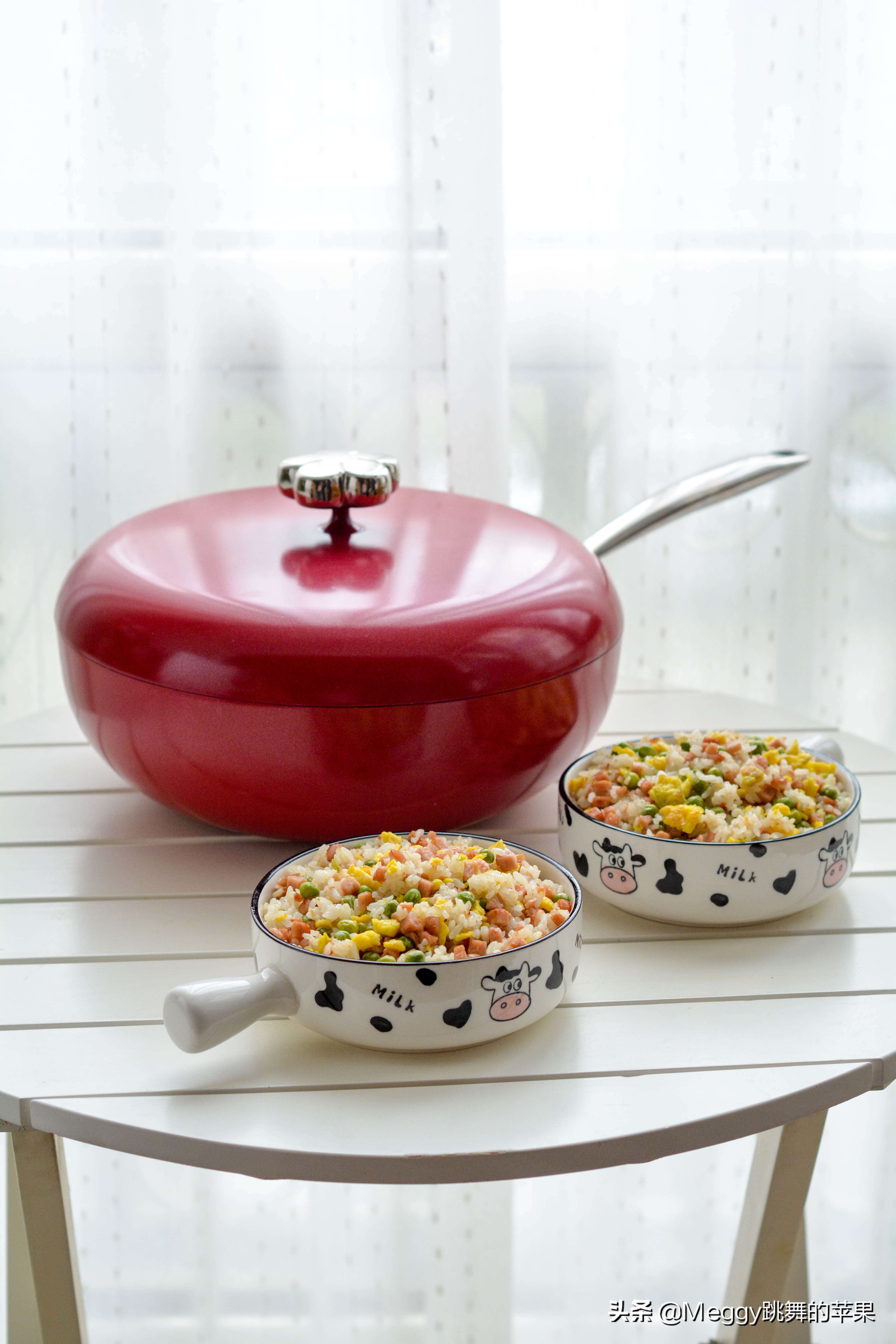 文中所用的“新思特”珍珠炒锅,有红白两色选,内壁不粘涂层,无味、耐磨;锅体周正,32cm大口径,可炒可炖,一锅多用,还有配套的不锈钢硅胶铲。