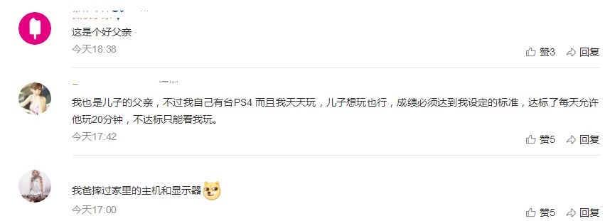 一位身为人父的网友补充道:“这就是最好的父母!。。。。等着,我也会切割一台游戏机给你们看……哈哈!xx”。