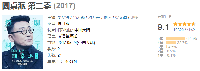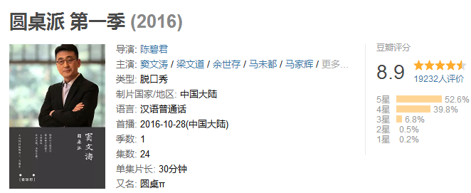 都说,脱口秀节目是成本最为低廉的综艺节目类型之一,因此很多电视台和网络平台都在做,其中不乏高晓松的《晓说》、张绍刚的《吐槽大会》等优秀节目。但是,不得不说的是,"脱口秀大神"窦文涛的"窦氏风格"给中国脱口秀历史添上了浓墨重彩的一笔。随着《锵锵三人行》在凤凰卫视停播下线,很多人唏嘘的同时开始继续窦文涛的脚步追起了《圆桌派》。从2016年10月首播至今,《圆桌派》已经相继推出三季,在豆瓣的评分依次为8.9、9.1和9.2,由此可见它的实力和关注对它的高度认可。
