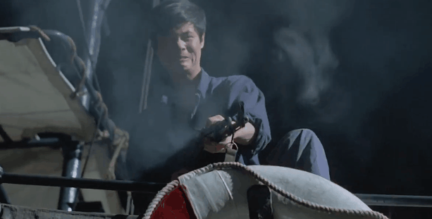 刘德华演一个越南难民,游着泳紧赶慢赶终于上船,却在难民船上被乱枪打死。