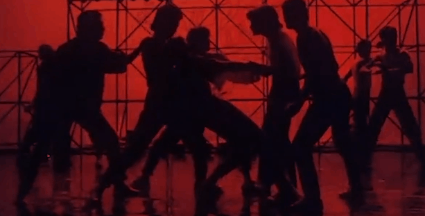 满屏的红光,抽搐的剪影,悲剧色彩拉满。