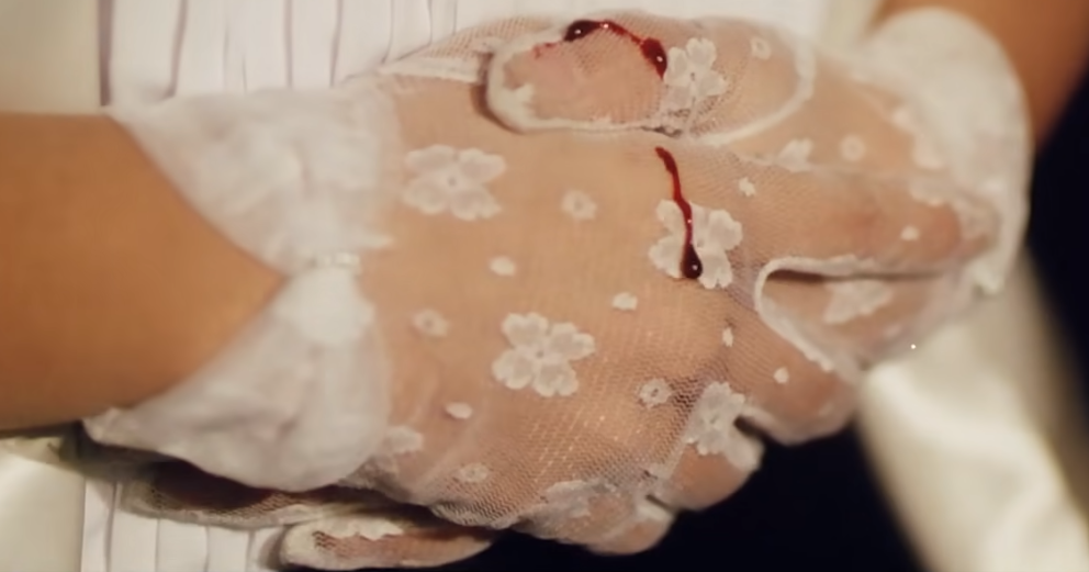 在骑摩托载上穿婚纱的爱人时,血就已经流到了她的手上。