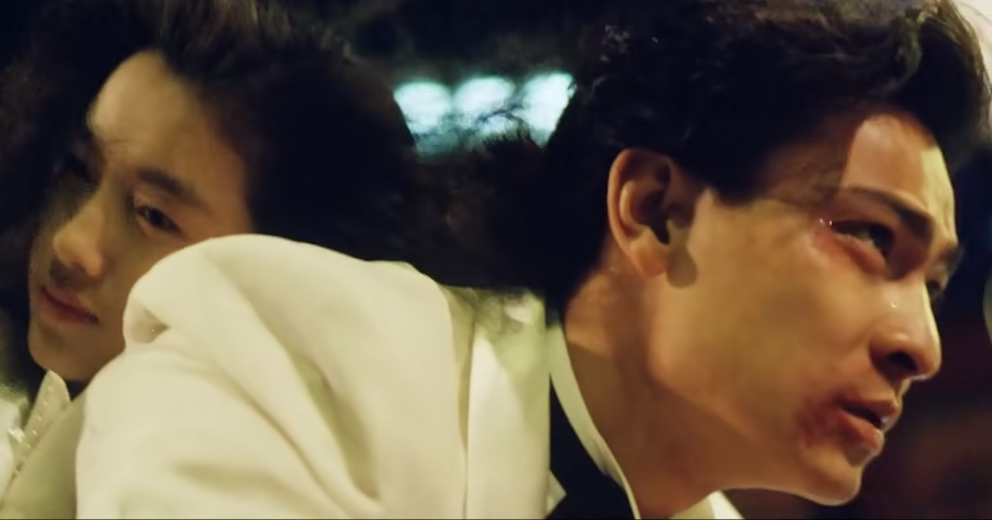 颜值巅峰时期的刘德华穿着白西装像断翅的鸽子一样从高楼上跳下,画面实在太美,必须算上!