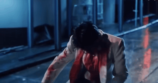 这里很悲壮的一点是,他明明已经喝了毒酒,鼻血已经止不住,还要硬撑着假装没喝到,以躲避反派的追杀。