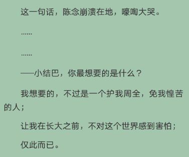 陈念说“我想要的,不过是一个护我周全,免我惶苦的人;让我在长大之前,不对这个世界感到害怕——仅此而已”