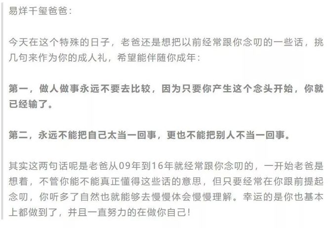 芭姐也记得,他18岁生日那天,恰好赶上娱乐圈多起负面事件同时爆发,当时很多人说,这是成年人的世界以最黑暗而冷酷的姿态给易烊千玺上了“入门第一课”——可世间纷乱,独持自我,他似乎从一开始就比很多很多成年人做得要好得多