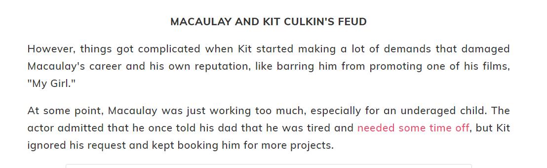 常年以来一直遭受巨大压力的麦考利,也开始放纵自己,而且由于退出了演艺圈,母亲为了打官司又花光了所有的钱,使得生活非常艰难。