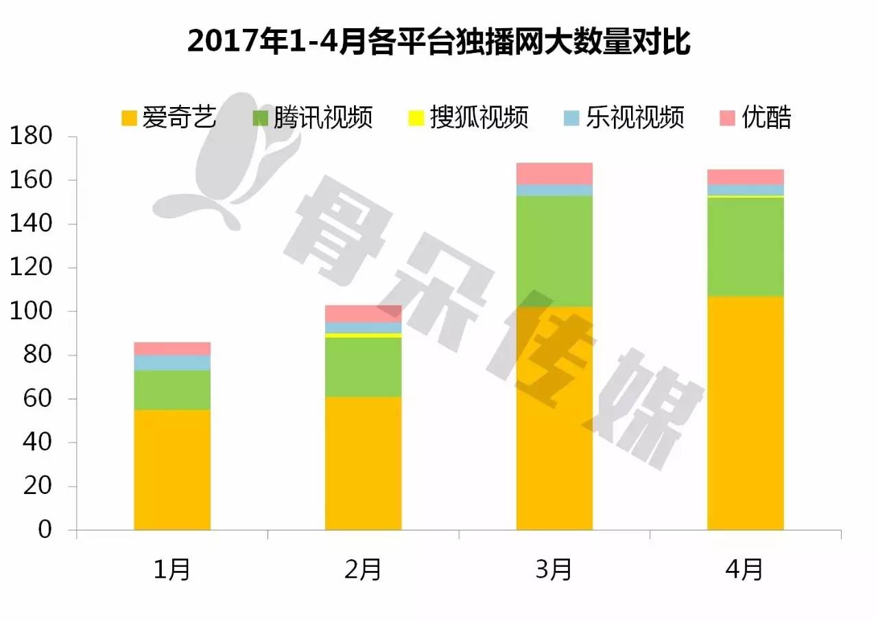 4月搜狐视频独播网大数量1部,较3月增加1部;