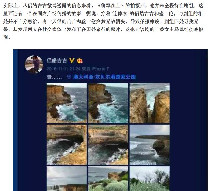 还有一点就是侣皓吉吉曾和盛一伦共同消失,导致剧组瘫痪。