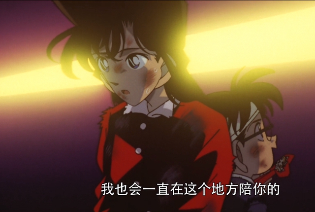 而这时候他们情感线的大推进基本上也都是在“生死一线”之中,比如说在柯南剧场版《计时引爆的摩天大楼》中,新一对小兰说:剪你喜欢的颜色,剪错了,我会陪你一起。“