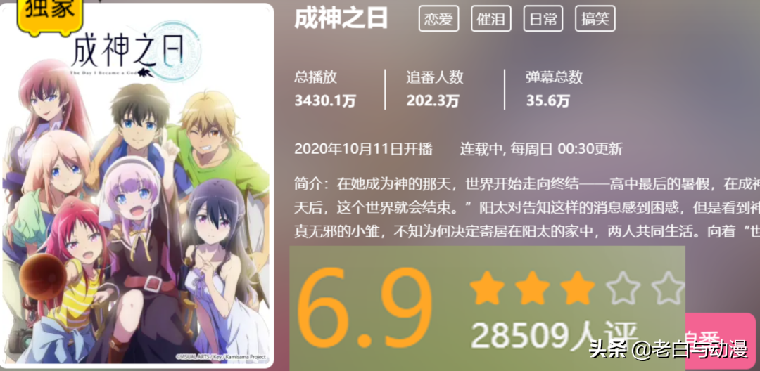 以上便是b站购买的十月番评分情况,低于7分的有五部,而低于6分的有三部,就上述这五部里,老白觉得最差的是神捡,不知你们怎么看?