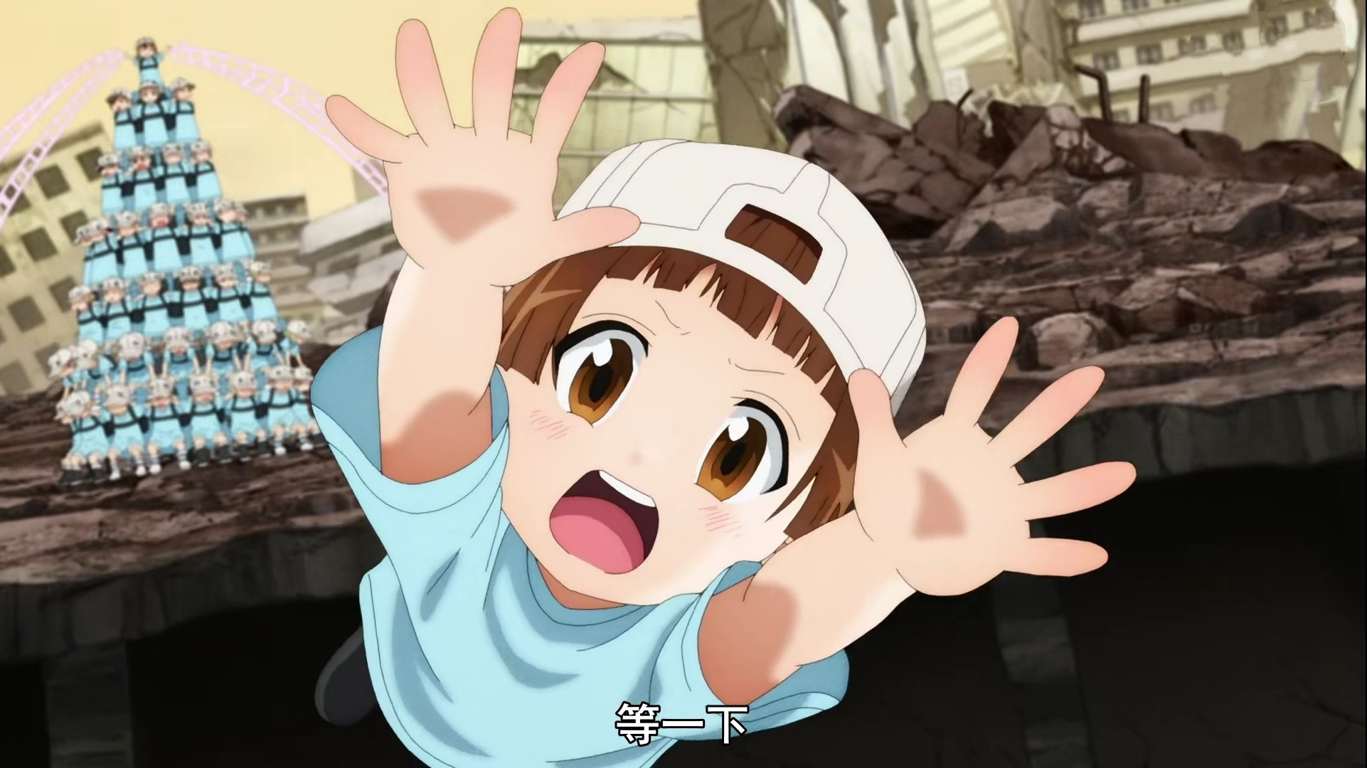 当然白细胞1146也是引出戴反帽亲的关键,两人相遇后有过短暂聊天,这里有种哥哥对妹妹的关爱的感觉。最重要是因为白细胞1146,戴反帽亲终于鼓起勇气,可以面对后面的难关。