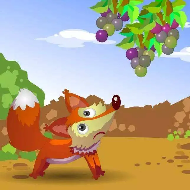 他看见小狐狸不但没吃葡葡,还围着葡萄架边唱边舞:“葡萄葡萄你真美丽,小狐狸也舍不得来吃你。”