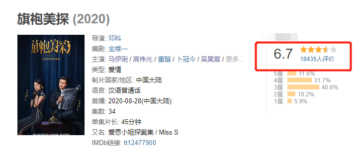 《旗袍美探》在评分网站的评分为6.7分,对于这部民国探案悬疑剧,不同的观众则有不同的看法。