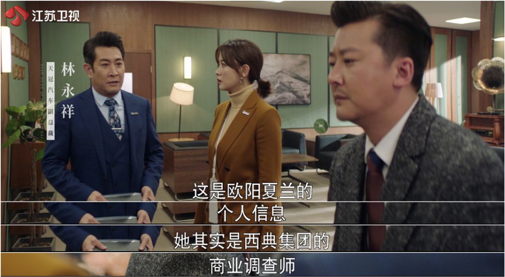 剧情一开始,作为天冠汽车总裁助理的欧阳夏兰,因为涉嫌侵犯商业秘密而被经侦大队拘传。