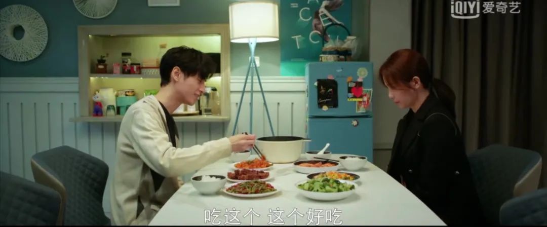 偶像剧里接吻撒糖常有,但是你想过正常人接吻之后会有什么反应吗?剧中江君和袁帅第二个接吻镜头出现在袁帅阻拦江君翻衣柜的时候,又是一个不小心两人来了个意外接吻。接着,脑洞大开的名场面就来袭了。江君尴尬地飞奔回餐厅与袁帅相对而坐相视无言。明明日常互怼的两个人突然间变得无比客气。袁帅:“你尝尝这个菜,这个菜好吃。”江君:“哦。”两人夹到同一道菜:“你先吃。不不,还是你先吃吧。”