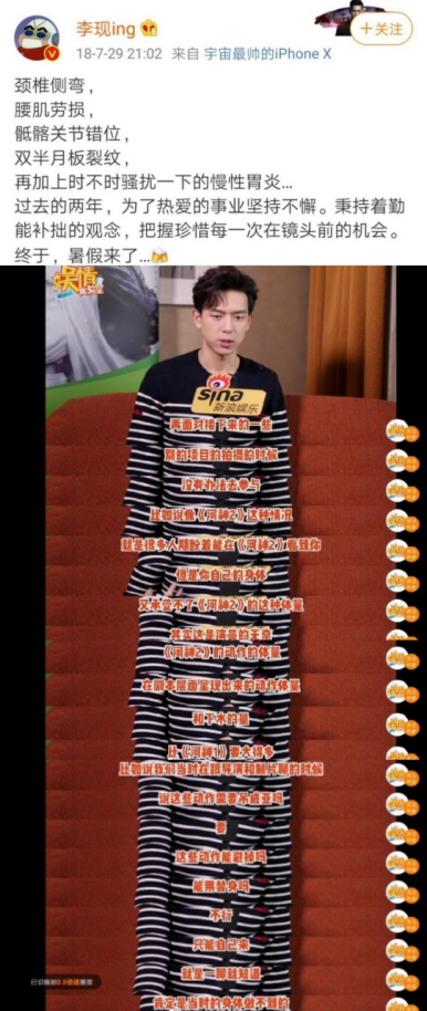 李现自己也回应道:“因为自己去为这个东西付出这么多的时间和精力,然后尽可能的让自己身体力行的去表演,去付出,换来的可能是自己身体的受伤。之后在面对接下来别的项目拍摄的时候,没有办法参与,这也是演员的无奈。”