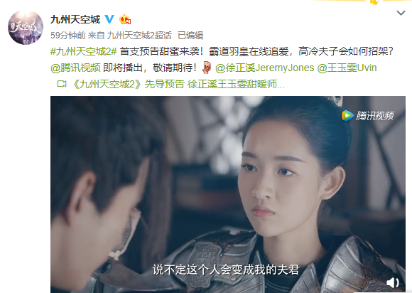 于16年播出《九州1》讲述的是羽族天才机关大师的女儿易茯苓和羽皇风天逸之间的故事,《九州天空城》第一部的双结局设计早已为续篇埋下伏笔,风天逸与易茯苓打破了星流花神的宿命轮回,有情人终成眷属,让网友大呼“过瘾”。