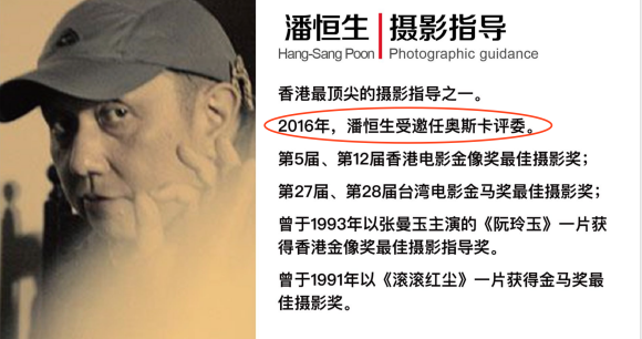 其次,电影的摄影指导是拿过两届香港电影金像奖最佳摄影奖,两届台湾电影金马奖最佳摄影奖,并且在16年受邀任奥斯卡评委的潘恒生,可以说是非常专业的,当然,普通人对电影的幕后人员不熟悉,不过如果说其担任摄影指导的电影名字很多人就熟悉了:《功夫》《大话西游之月光宝盒》《大内密探零零发》《长江七号》《霍元甲》等都是如雷贯耳深受观众喜爱的。