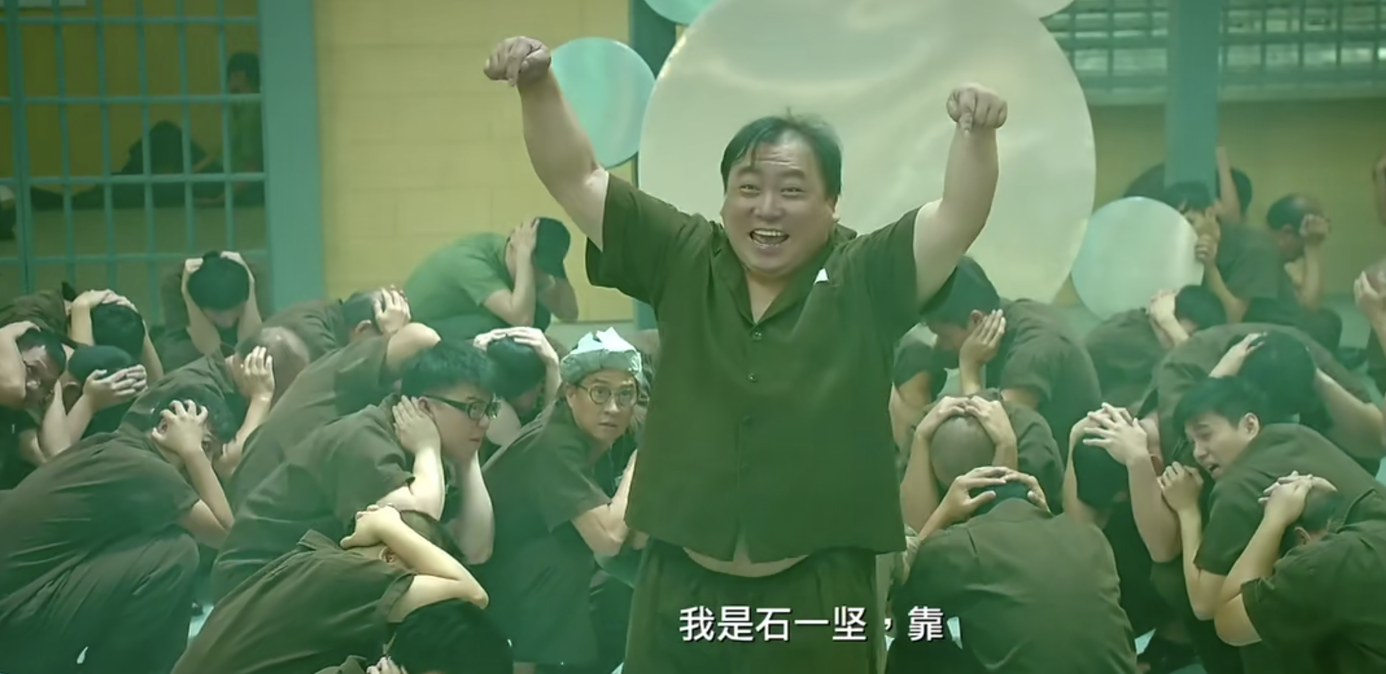 《友谊之光》的原唱肥妈玛利亚,饰演监狱看守,带上2撇小胡子,一身制服的肥妈,像个胖小子,肥妈一开嗓,大合唱气势也不一样了