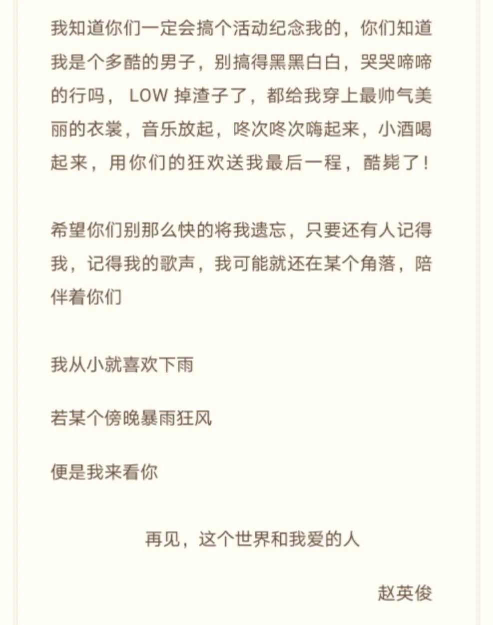 在他去世后,亲友在他的社交平台发布了他编辑的最后一篇小作文,这也是他与自己,与歌迷朋友,与这个世界,最后的交流。