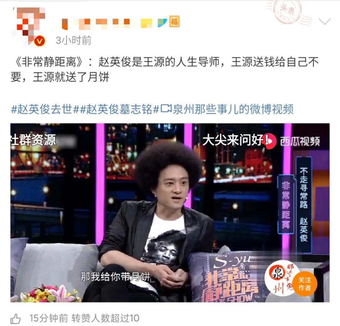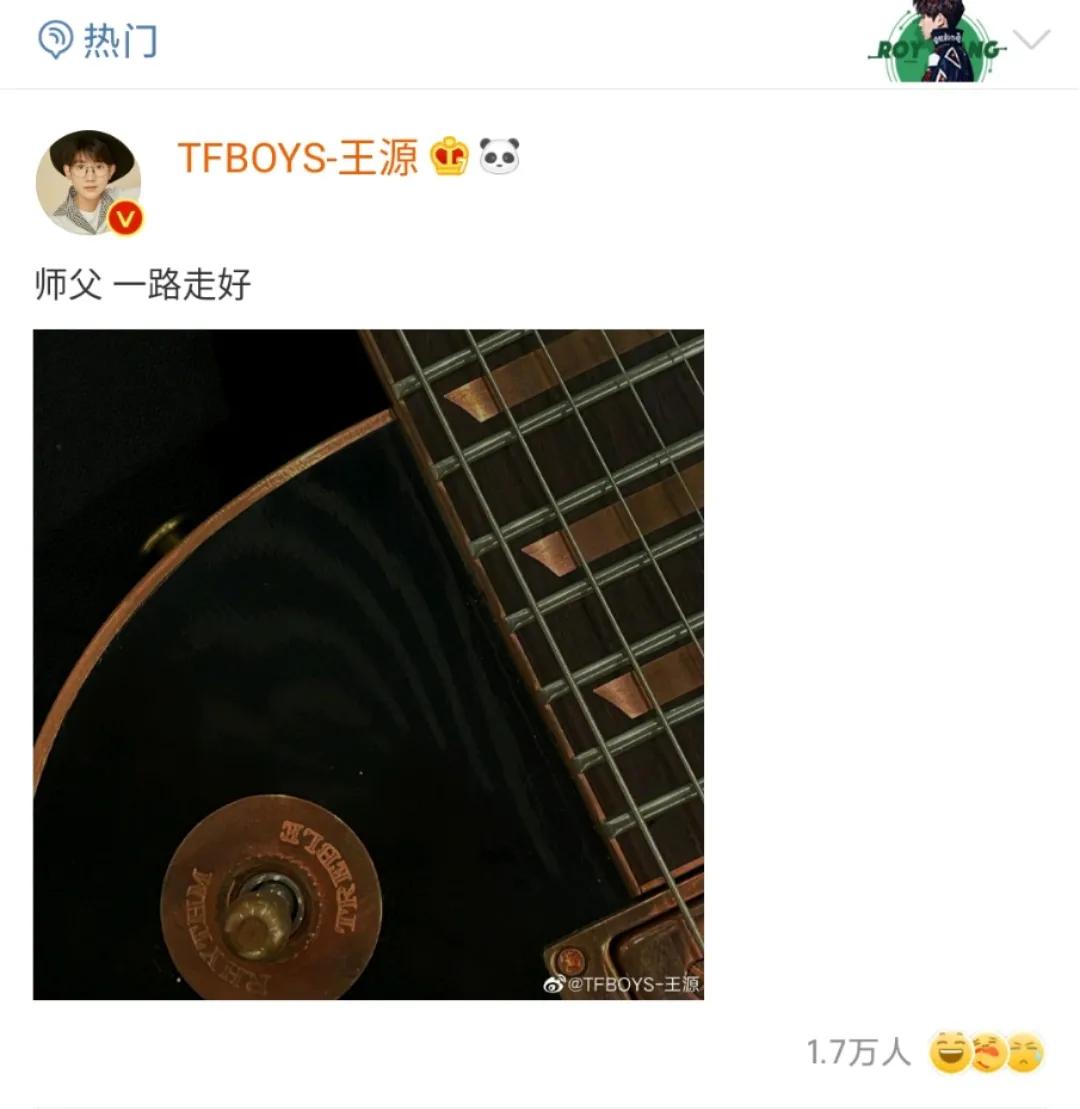娱乐圈凡是与赵英俊打过交道的人纷纷发声悼念。与赵英俊合作过综艺《青春旅社》的王源,也在社交平台上晒出了赵英俊送自己的吉他,说到:“师父,一路走好。”表达自己的不舍。